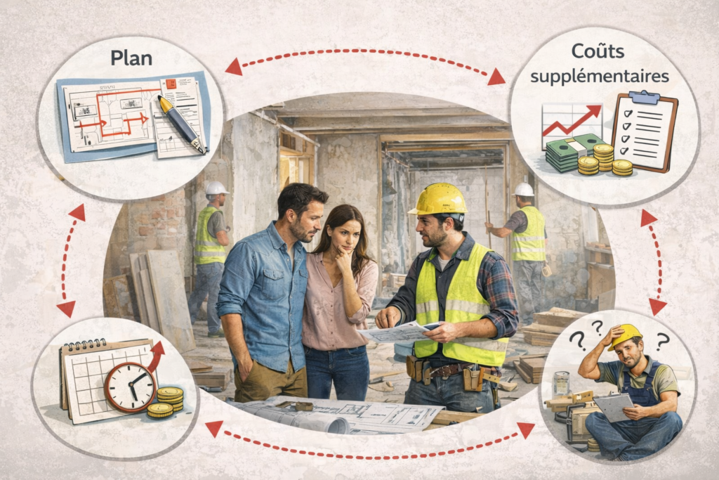 Modifier un plan, déplacer une cloison ou changer un matériau en cours de chantier a un impact direct sur :